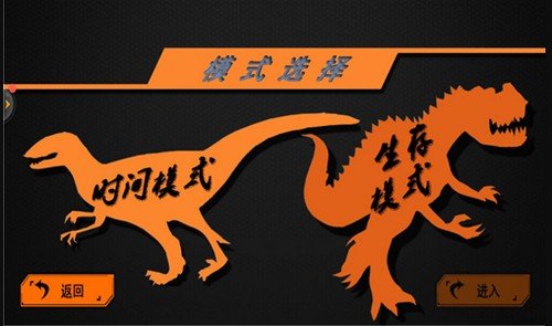 游戏有两种模式:时间模式和生存模式。每个模式有五个级别。进入游戏后,会有任务描述的关卡,以及温馨的心得提示,提醒玩家注意流浪恐龙。