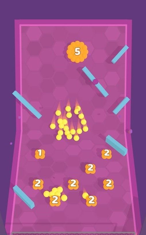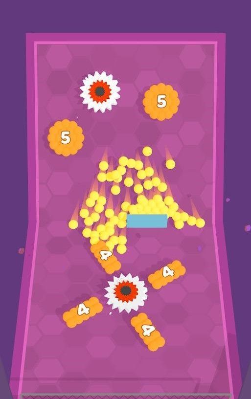 避开滚轮再次射到圆盘上,圆盘就会炸裂分散出很多小黄球,为你增加小球的数量,数字越大,爆出的小球就越多。