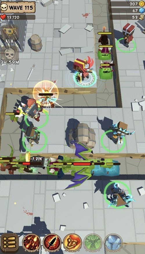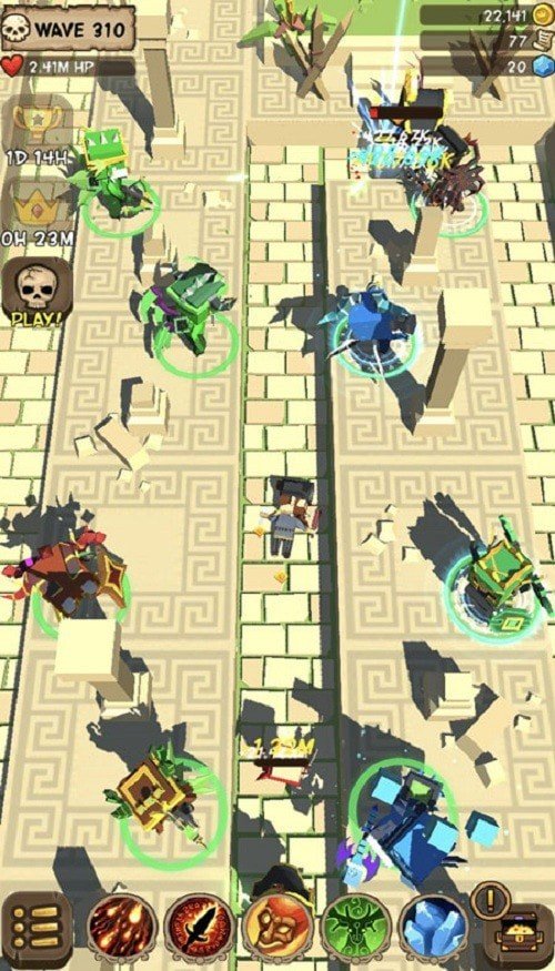 你在这个空闲TD游戏中的主要目标是使用你的英雄阻止怪物在迷宫结束时到达宝藏。