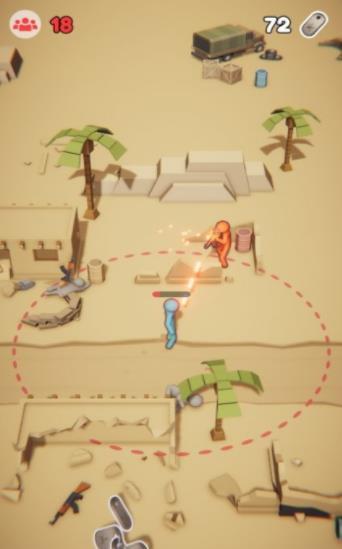 2、躲避敌人的子弹并靠近敌人,直到进入投掷范围并向敌人扔炸弹。