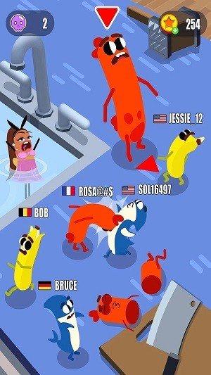 释放以冲撞敌方香肠并将其推到竞技场的障碍物上,如锋利的工具、厨房水槽、花园烧烤。