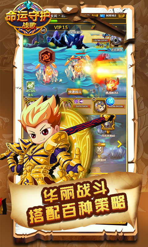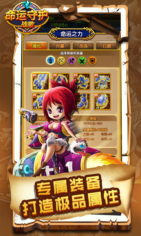 命运守护战歌是一款动漫风格的休闲放置类手游,游戏讲述了玩家集结动漫英雄,不断在冒险中成长,对抗各种黑暗势力的故事。游戏提供超百种英雄,装备,技能搭配,玩法丰富有策略,烧脑看脸拼实力,战斗采取全自动的模式,全天不间断升级,上班游戏两不误。