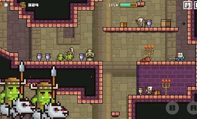 2、这款游戏也是有各种敌人和机关测试他们的操作以及复古的图像和声音效果。