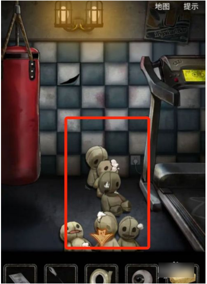 第三步:心理室,左侧布偶堆,得到说明书和手套,手套绳子用指甲刀剪开。