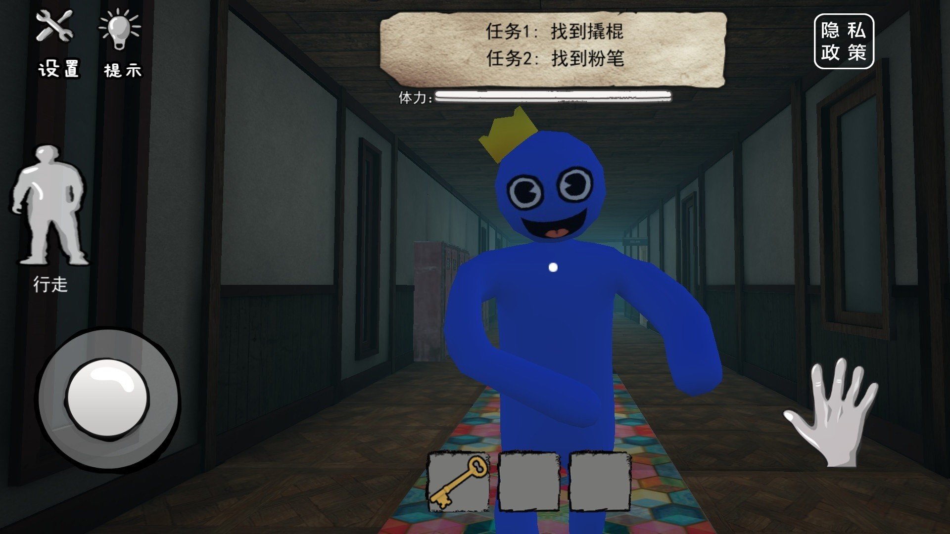 2、躲避蓝色面条人游戏内你要注意不要被随时出现在任何地方的蓝面人抓住。