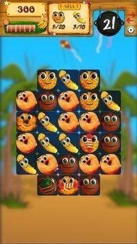 游戏中的图形都是一个个非常可爱的食物,玩家需要将相同的食物连成一条线,三个以上相同的食物就可以直接消除了,四个或四个以上的食物连成一条线就会生成一个游戏道具,道具可以帮助玩家消除更多的食物图案!