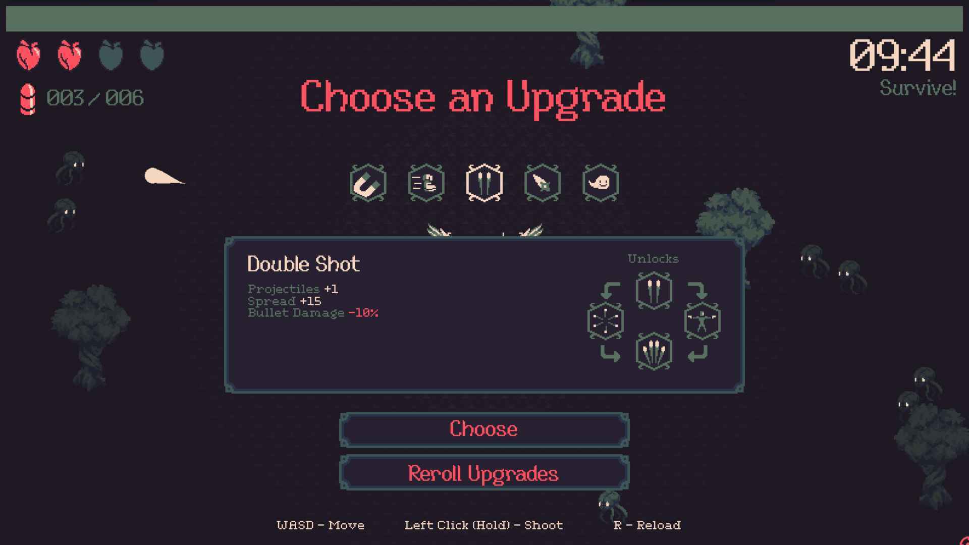 整体来说《黎明前20分钟》在同类同玩法的肉鸽游戏里面,也属于基础打得很扎实的一类,能够让玩家在短时间里沉迷于打枪与清屏。不过还是有着部分不足之处,首先就是boss,也许是时间有限,20分钟内的boss只有5个,其中3个是掉宝箱的应该只能算得上是精英怪,因为他们跟小兵一样完全没有出招,移动速度也与普通怪无异,只有血量优势;而另外两只怪一只会冲刺、另一只会地图炮,稍微有点boss的模样,但还是没能做出较大的差距,整体压迫感不强。