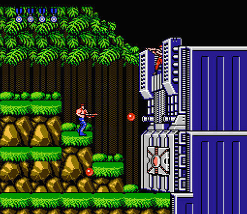 玩家可以跳跃并在跳跃时用方向键控制移动和开火的方向,而且跳跃时的方向控制在游戏进程中十分重要。