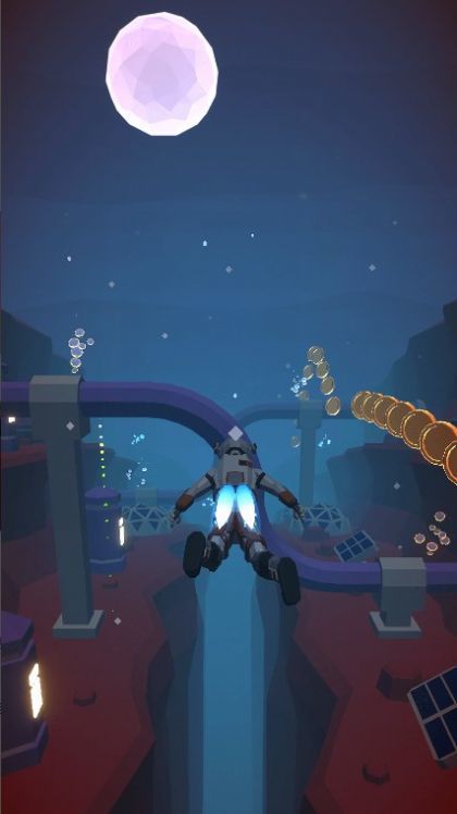 1、使用喷气背包控制角色的飞行和移动,避开各种障碍和陷阱;