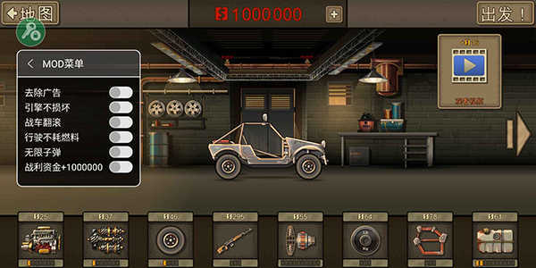 游戏中玩家们及时失败了也可以获得金币,金币可以让我们对汽车进行升级,如提高汽车的加速、防御能力等等,还可以在汽车上配置武器从而将僵尸们消灭在远处,而这些装备对于玩家们过关来说无疑是最重要的了。
