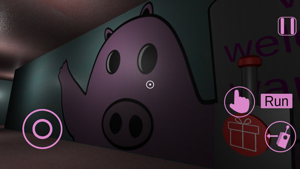 2、玩家点击屏幕可以选择你想要的视角,点击左边方向虚拟键盘可以控制角色方向,点击右边【run】按钮可以拾取东西;