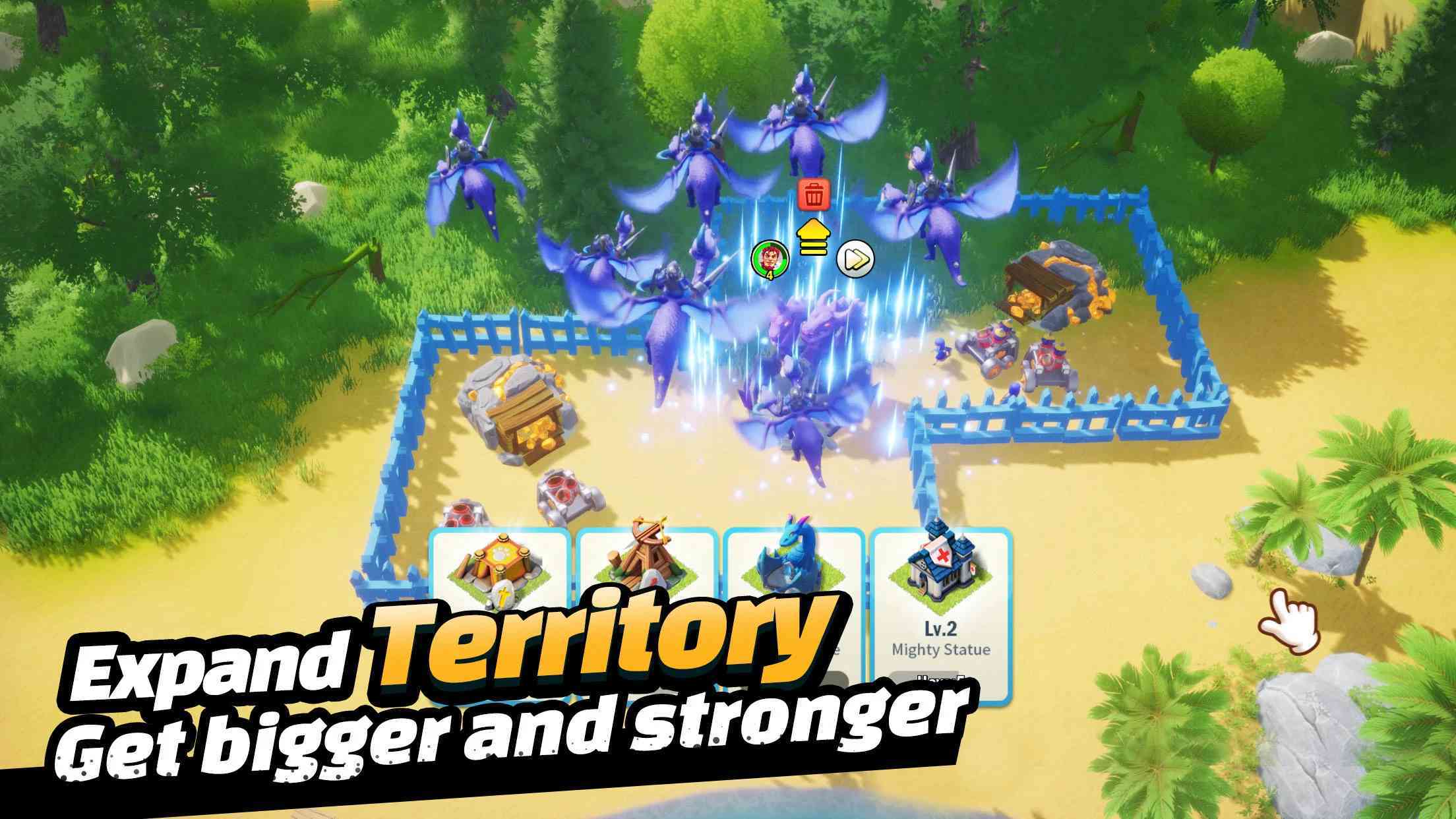 建造你的城堡从头开始,您可以通过合并地块、训练部队、布置和升级建筑来打造您定制的独特城堡。
