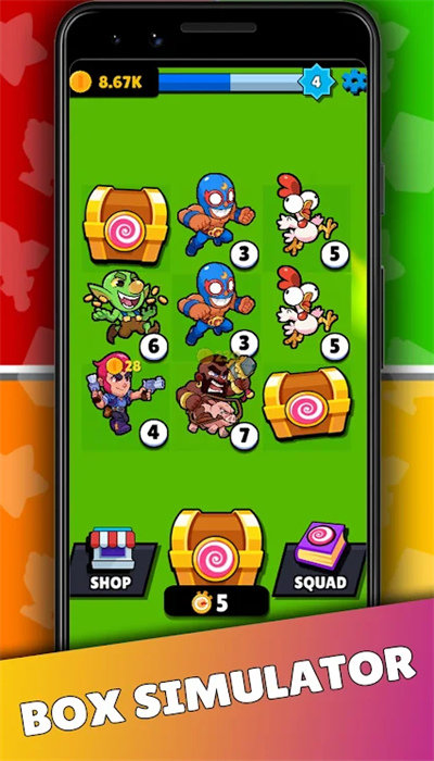 小队终结者模拟器(Squad Busters Box Simulator)是一款当下十分火爆的Q版卡通风冒险闯关游戏。玩家将扮演一个拯救世界的小队成员,与队友一起踏上冒险之旅。游戏中,你需要在各种关卡中完成任务,挑战敌人和障碍。每个队友都有独特的技能和特点,玩家需要灵活运用各种技能来解决问题。游戏内容丰富,游戏画质精美,还不快叫上你的小伙伴们一起加入我们吧!