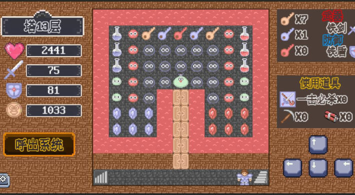3、装备收集:在魔塔中,玩家可以收集各种装备和道具,用于提升角色的能力和生存能力。不同的装备具有不同的属性和效果。