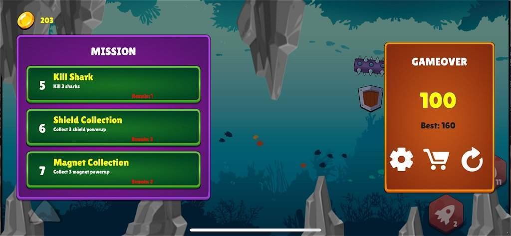 4、在游戏中,玩家需要避开各种海洋生物和障碍物,跳跃和躲避来到达关卡终点,
