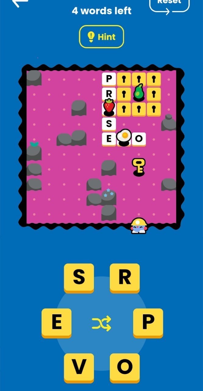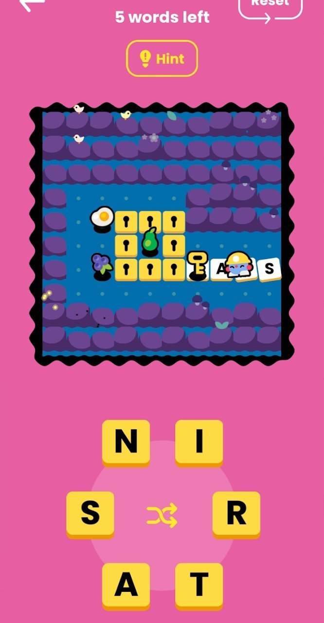 1、各种形状的字母等待你来连接,你需要将字母组合成单词;