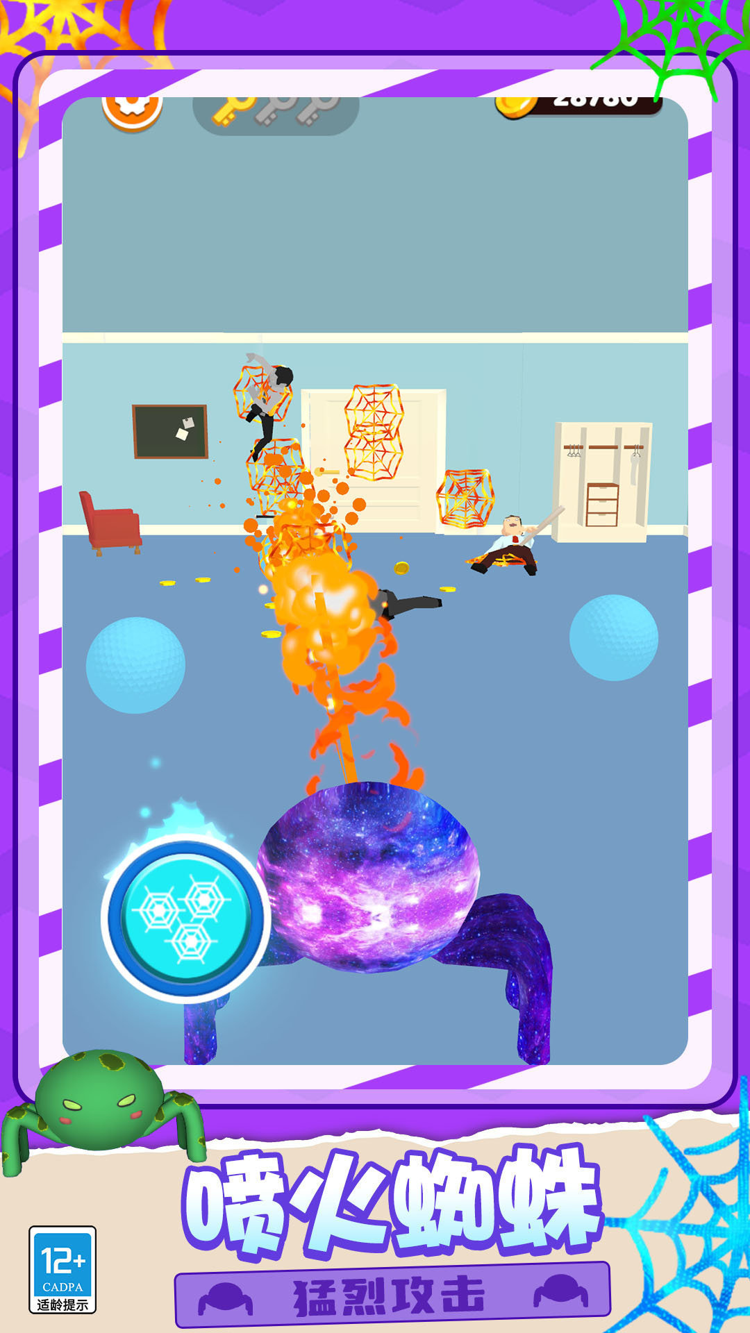 3.使用摇杆控制蜘蛛的移动来攻击敌人或躲避危险,以确保您能够安全地通过各个关卡。