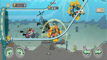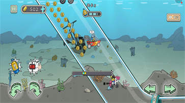 2、游戏的地图场景多变,卡通的画风,奇怪的山坡,玩家要操控飞车来爬山。