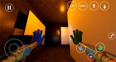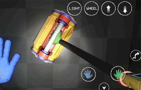 玩家需要找到四个电池,拿到红手,制造玩具钥匙,逃离HUGGY(蓝色大猫咪)。通过收集电池并放置在电池桩上,玩家可以打开新的门,进入下一个区域进行电源配对。