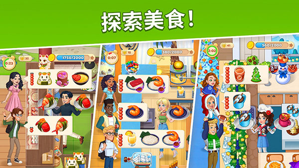 开启新餐厅,按喜好进行装饰,立志成为美味山丘的最佳厨师。在餐厅里安装新音响系统,迎合顾客的音乐喜好,获取更多小费;或者购置崭新的电视机,供顾客在等待点餐时消遣。你可以担任自家餐厅的室内设计师,重新设计墙面和地板,用吸睛的画作与窗帘装点餐厅