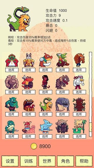 3、Q萌的像素风格角色设计,游戏内收录了超过247名属性各异的角色,确保每次冒险都能获得不同体验。