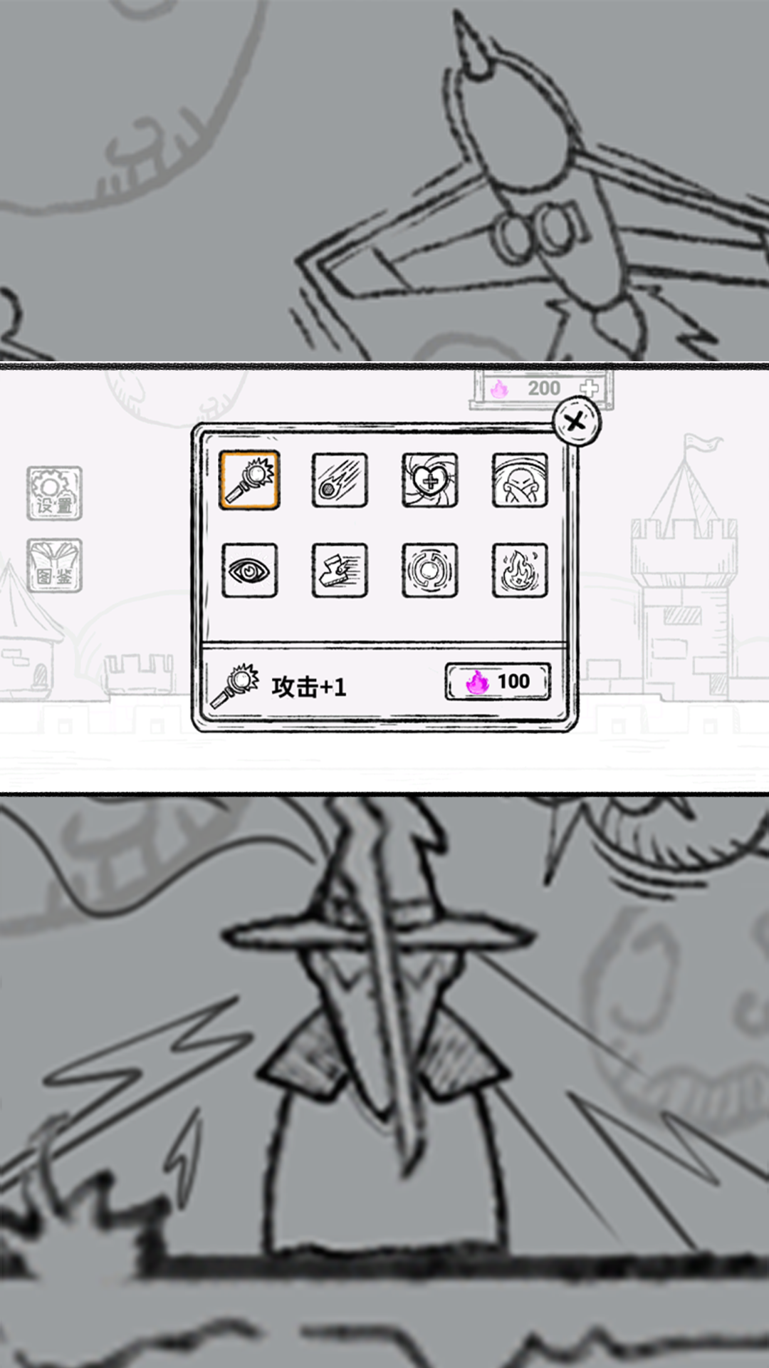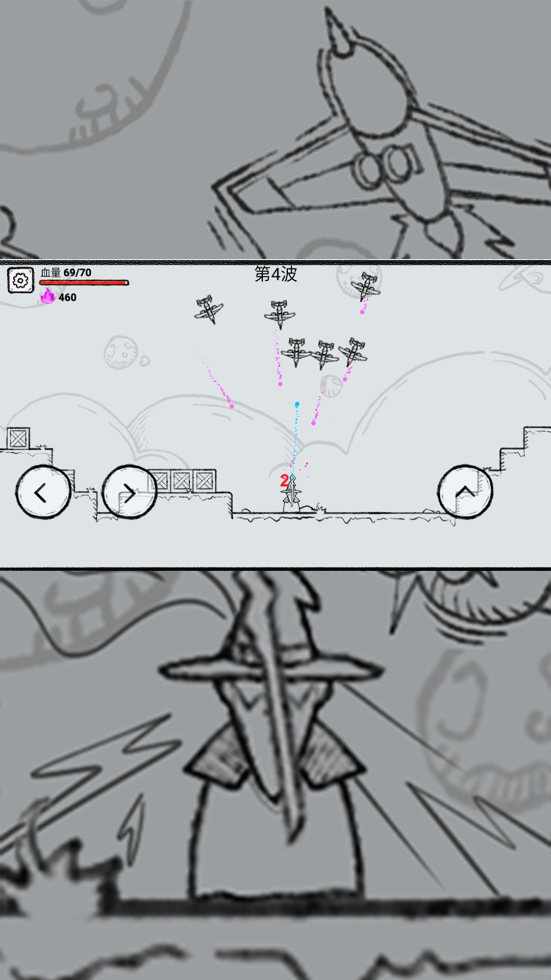 2、观察这些敌人所使用的飞机武器,使用相应魔力便可清理它们。