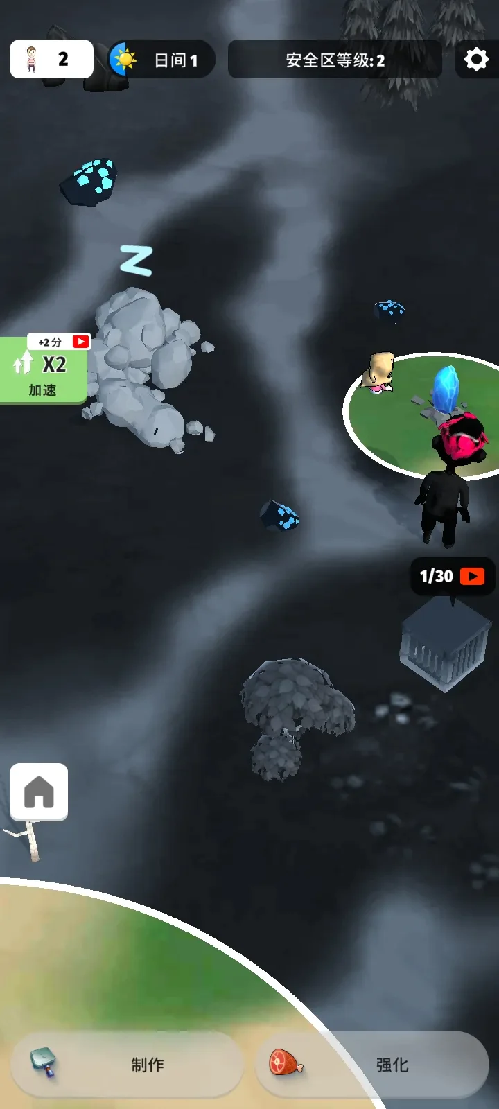 2、探索岛屿,收集木材、石头、食物等各种资源来建造和升级你的营地。资源管理是游戏的重要组成部分。