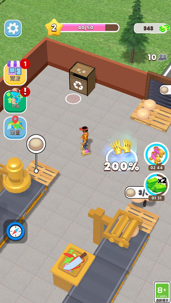 2、关注升级进度条,及时为店铺设施升级,提升制作效率与顾客容纳量,助力小店发展。