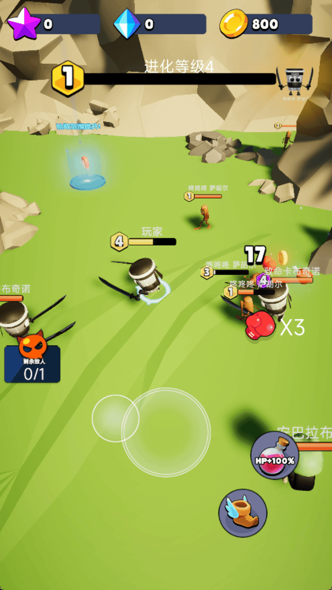 1、进入地图之后,滑动虚拟摇杆,控制角色移动,与敌人进行对抗。