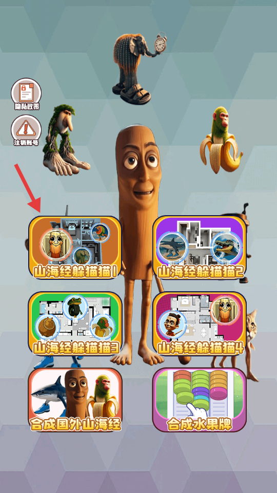 2、模式页选【山海经躲猫猫1-4】或合成玩法-依标识(颜色-图案)挑模式-准备匹配对局。