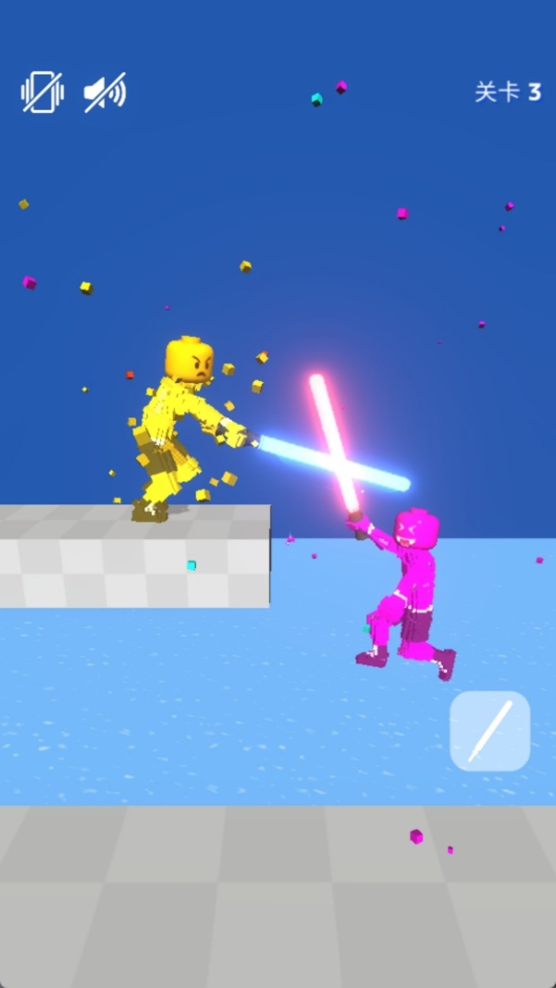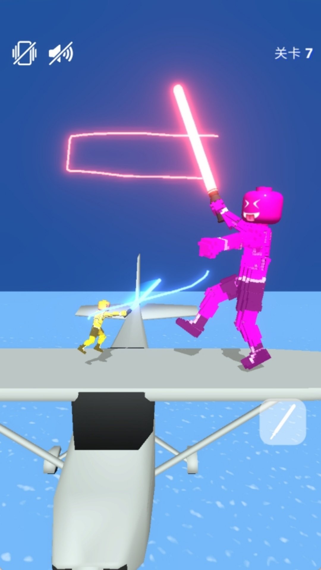 1、灵活地操控里面的角色并手持光剑与各个敌人们战斗,可以通过在空中滑动轨迹来完成你的进攻路线噢;