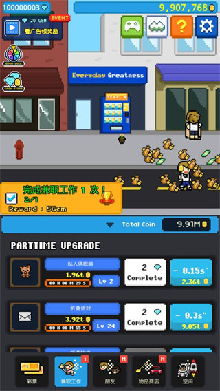 2、像素风格的画面,画质感还是不错的,可以邀请好友助力更快的成为土豪;