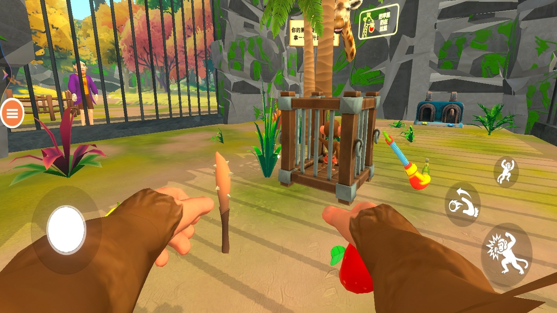 游戏核心乐趣在于与性格各异的游客互动 —— 温柔者会投喂香蕉,暴躁者可能挑衅追赶,每次相遇都能触发独特剧情,让笼子氛围或温馨或紧张。玩家可自由抓取香蕉、抢夺相机、抛掷物品,在笼子杠上摇摆嬉戏,借助物理互动系统打造专属玩法。逼真场景与不可预测的互动结合,带来充满喜剧与混乱的沉浸式体验。