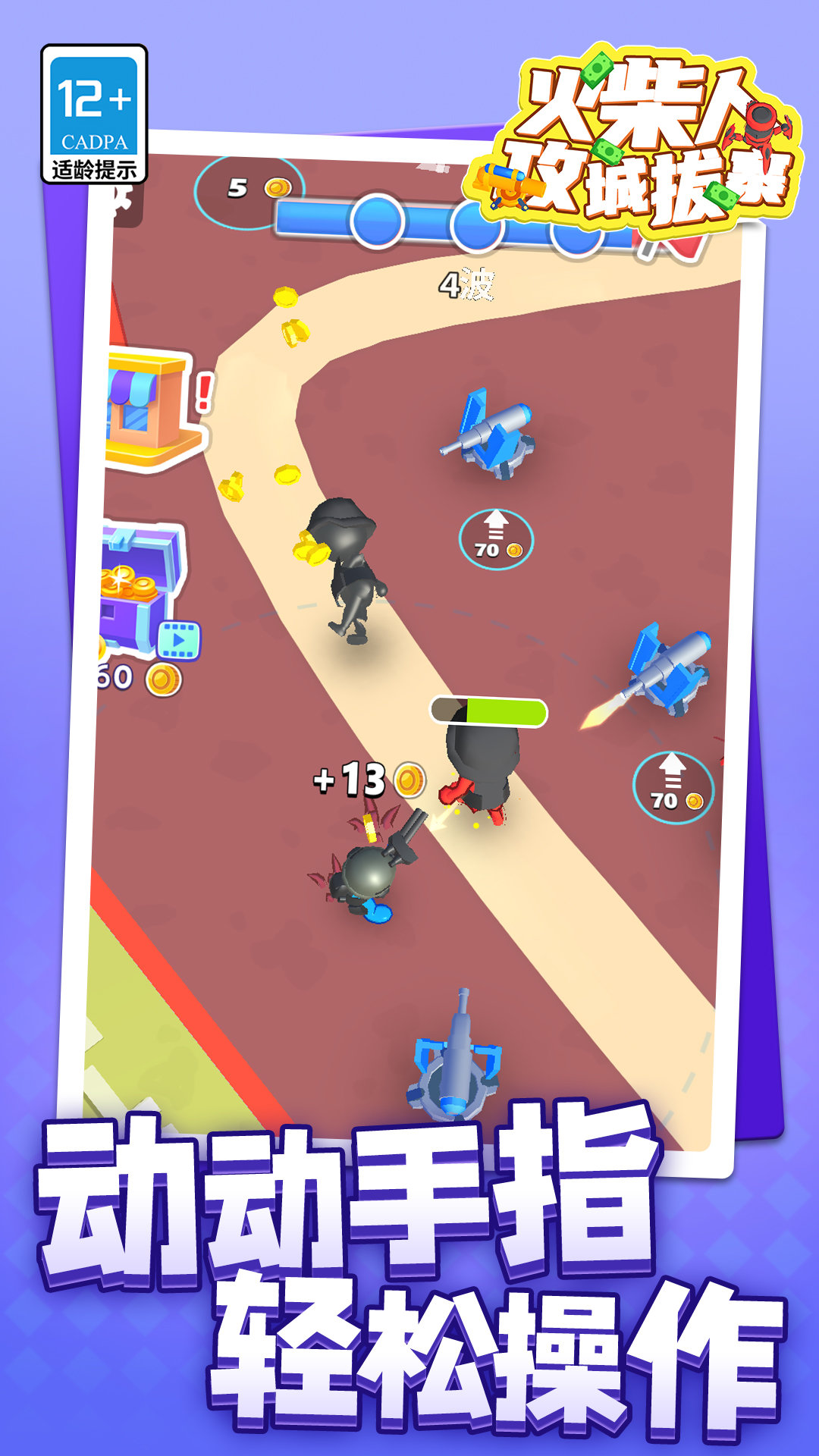 在《火柴人:攻城拔寨》中你将扮演战斗英雄,借助风骚的走位,强大的火力,亲自消灭区域内的全部敌人,构建防御塔楼,解放沦陷的地区。简单的火柴人造型,标准化的第三人称动作射击元素,火力强大的塔防建筑,紧张刺激的防御对抗,将为你带来从战争到战术的全方位战场享受。