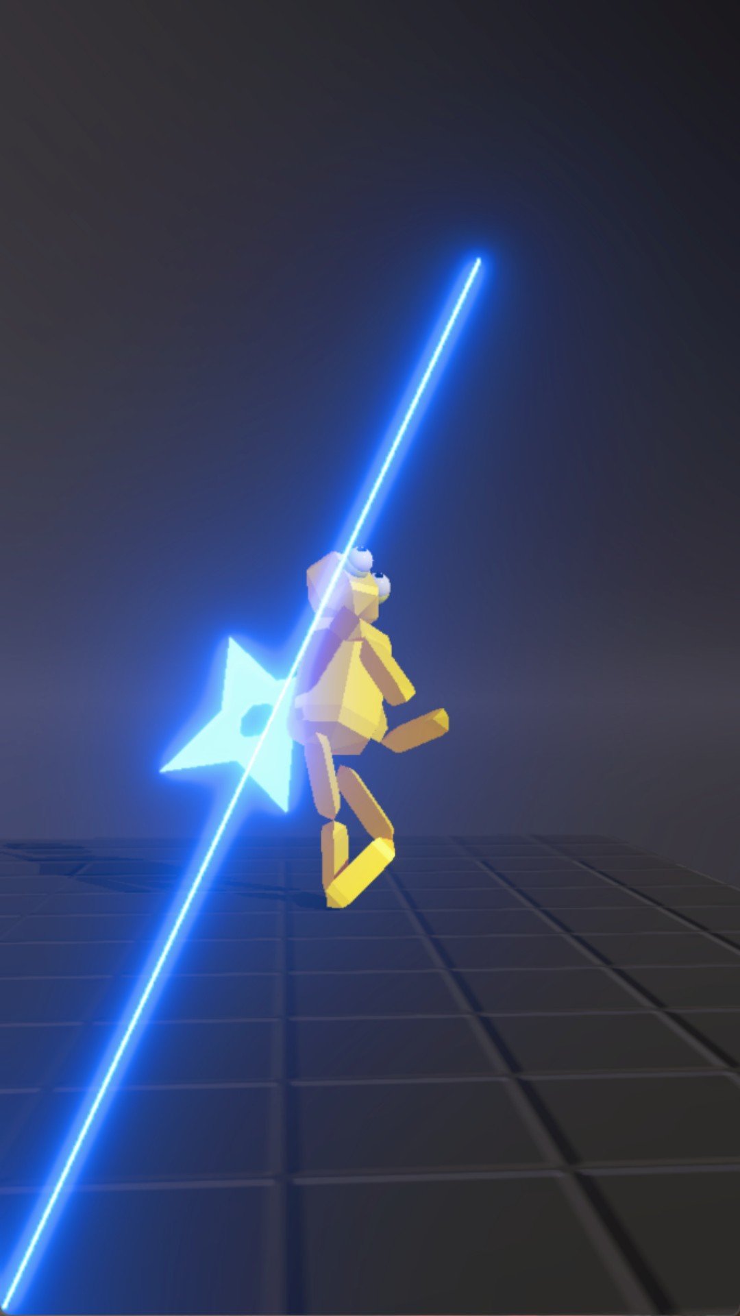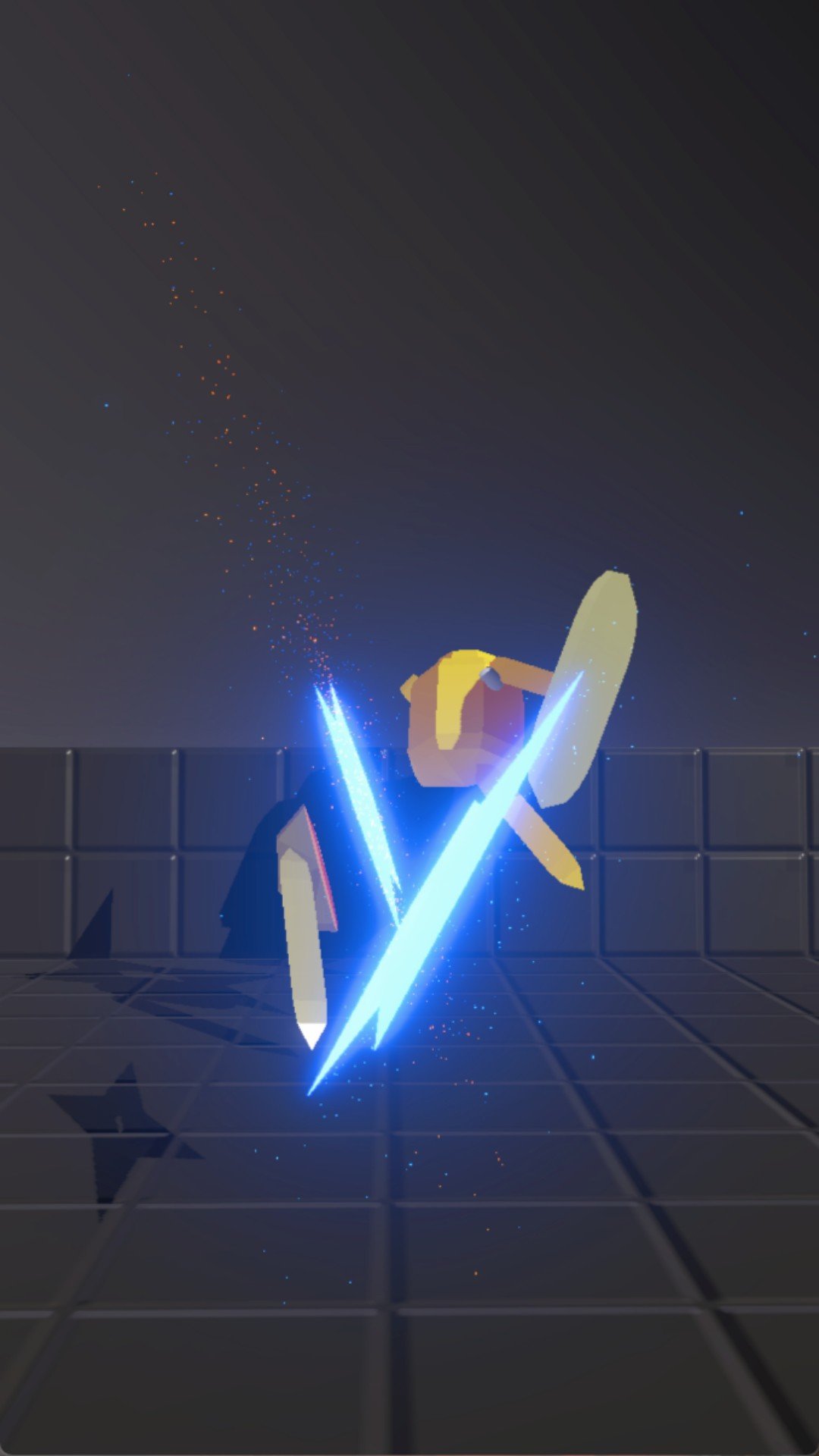 2、光剑轨迹带有流光特效,击中敌人时产生粒子爆炸,木偶人被摧毁后碎裂为几何碎片;