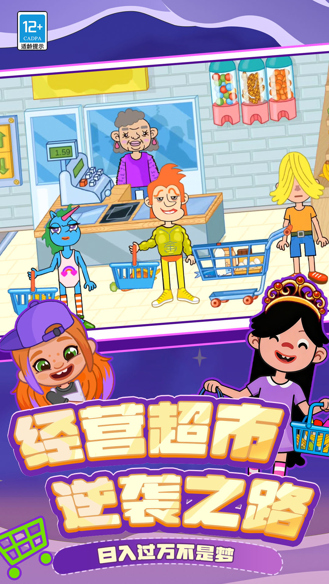 3、场景设计丰富多样,包括超市、餐厅、服装店、玩具店等,每个场景都有独特的装饰和布局。