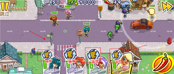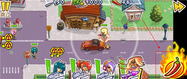 4、最右边的辣椒道具我们可以投喂角色,可以在一定时间内增强角色的攻击力,可以在尸潮来临时使用