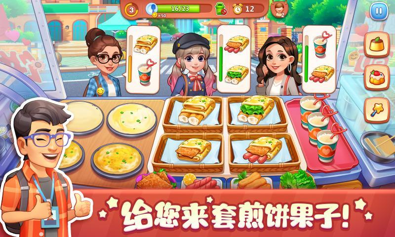 1、点击进入游戏,跳过剧情故事,经营自己的美食小摊,制作热腾腾的煎饼。