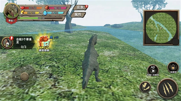 2、在这个残酷的世界,你将扮演一只霸王龙去击败比你更弱小的生物