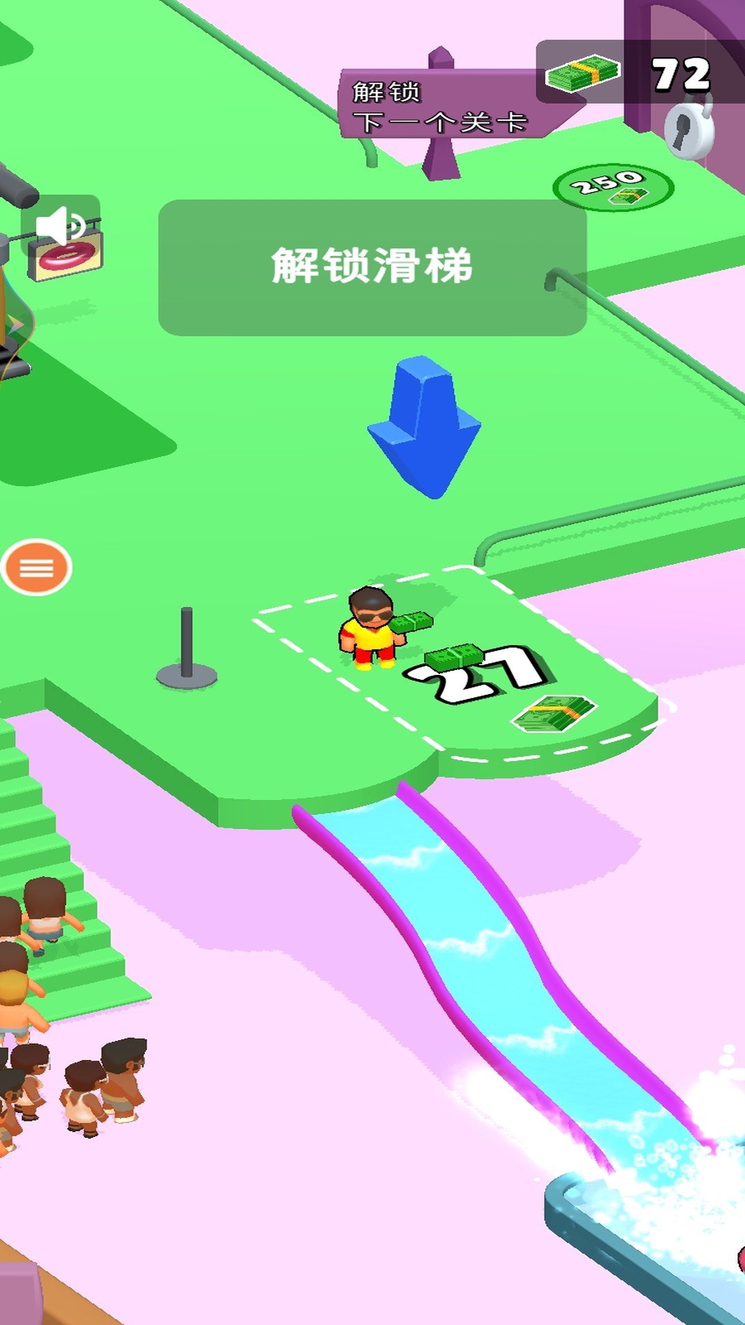 疯狂水上公园游戏是模拟类经营游戏,玩家可以看到很多不同颜色的小人,需要好好的管理这个神奇的游乐园,大量的玩法你都可以体验,玩家可以在里面体验各种娱乐项目,不断地赚取收益升级游乐园的设备,感兴趣的小伙伴快来下载试试吧。