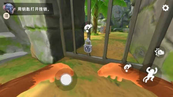 2、可以拿着钥匙走到铁锁的面前,点击上方的按钮,就可以打开了。