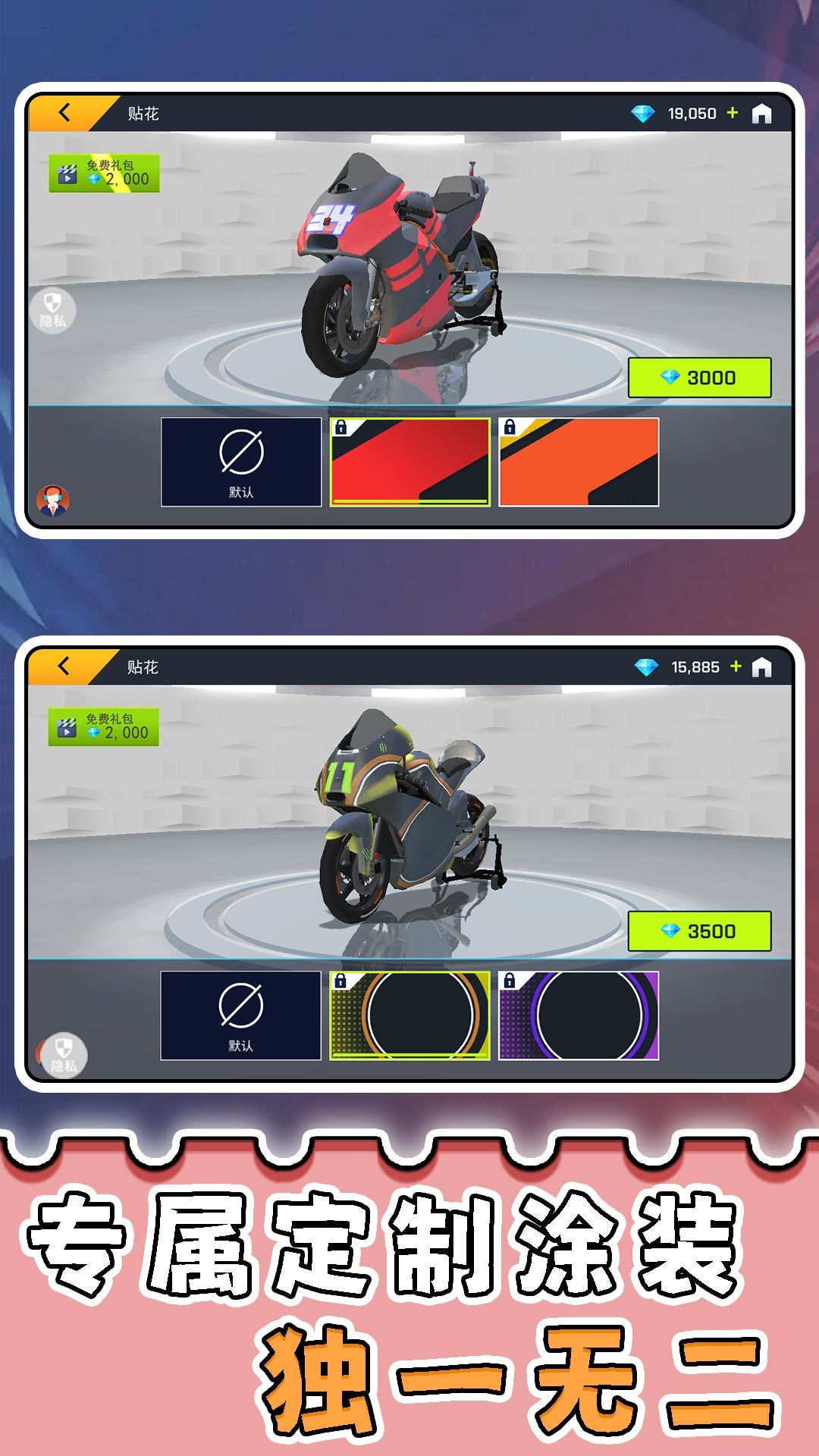 4、利用比赛奖励的金币升级摩托车的最高速度、加速度等属性,或解锁新座驾,提升竞技实力。