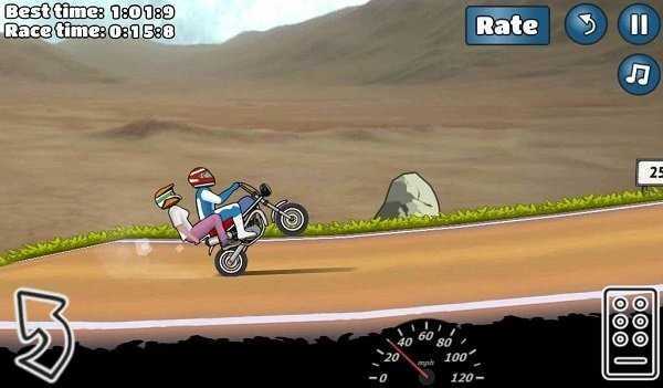 2、游戏中点击左侧的【油门】按钮,使摩托车开始翘头。