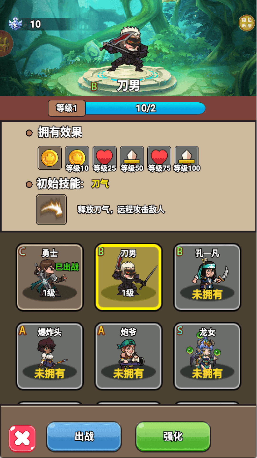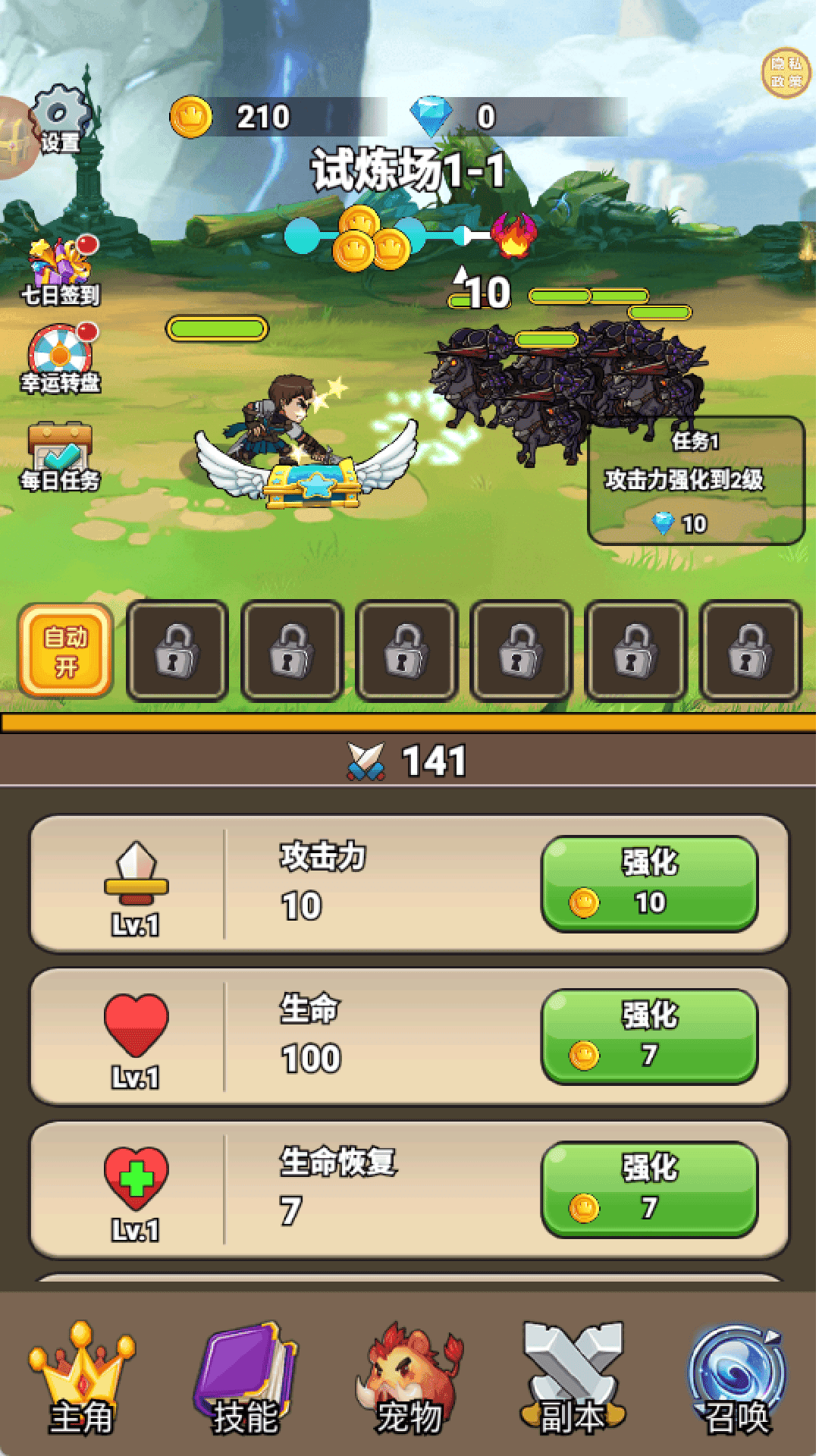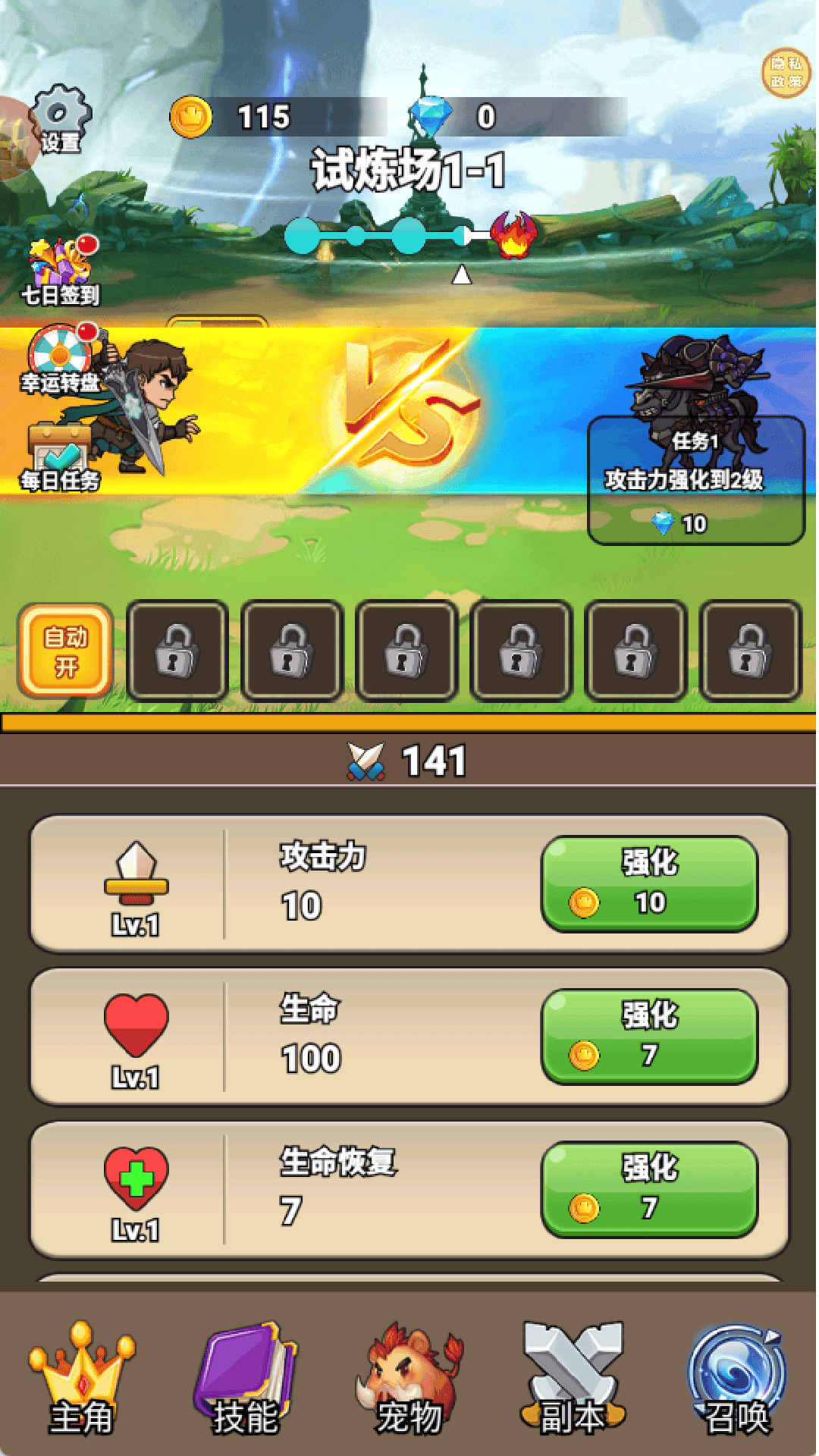 2、点击主角,有很多的角色,其他的都需要等级达到才可以解锁。