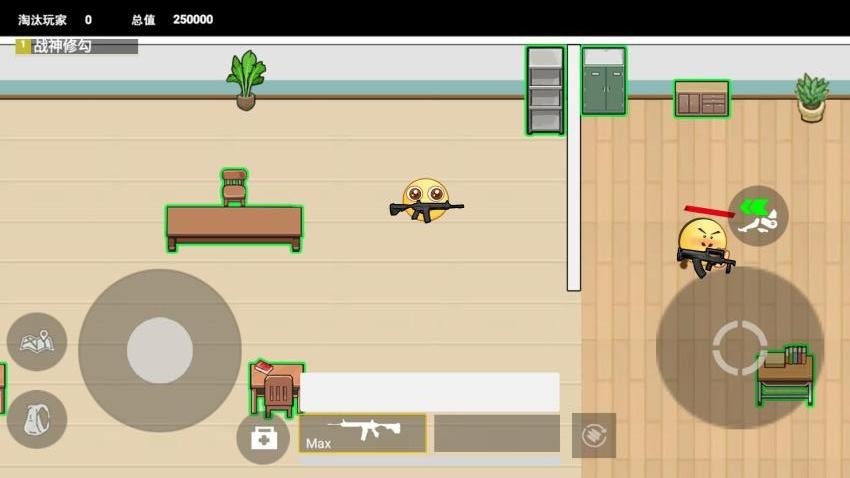 6、遇到敌人就可以自动攻击,左侧按钮控制角色移动,右侧按钮控制枪口射击的方向