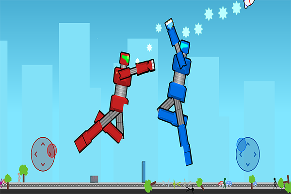 1、控制机器人走路的同时出招,连招简单到小学生都能秀操作,并且可以抓起场景里的汽车往对手脸上砸,这会造成不同程度的伤害效果。