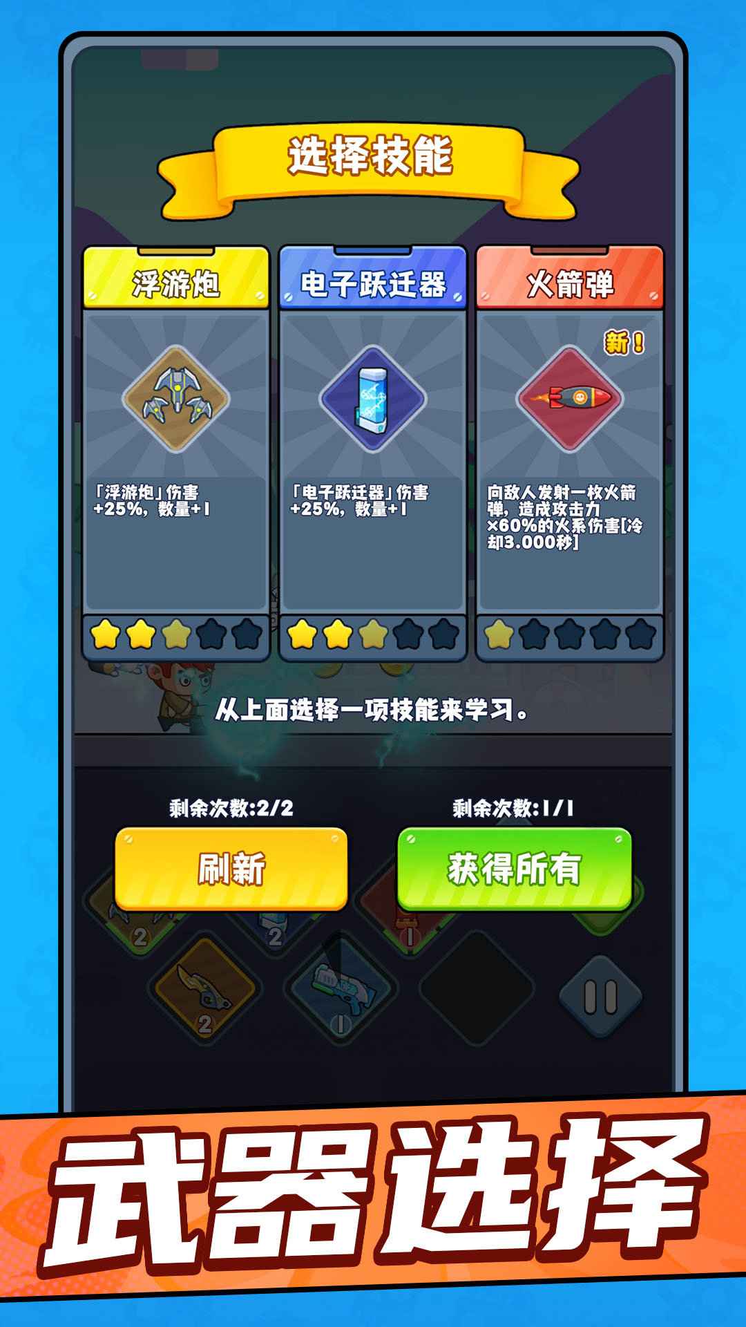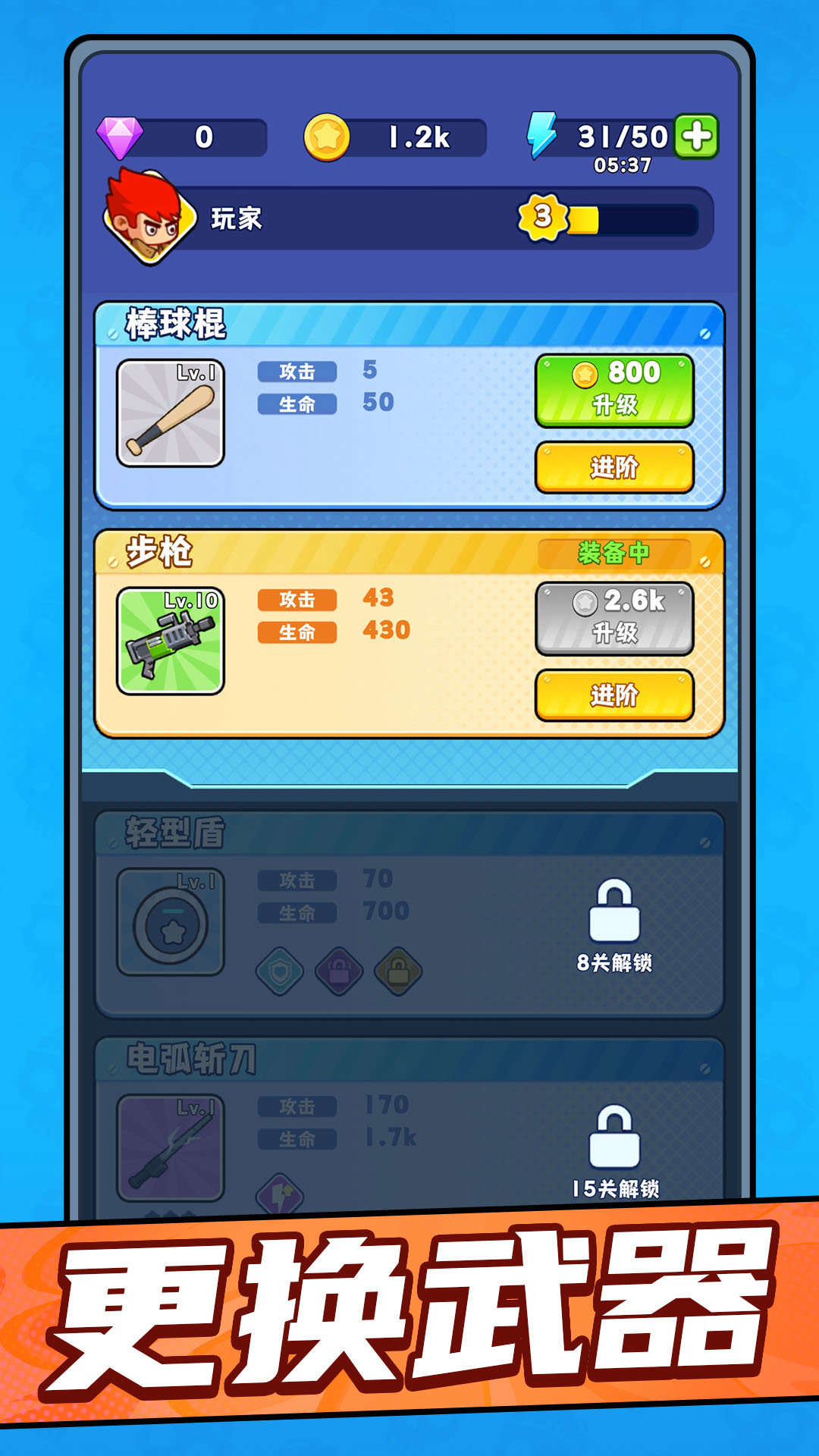2、每局结束后优先用保留的资源解锁实用武器,再逐步强化进阶,持续提升角色实力,为后续挑战铺垫。