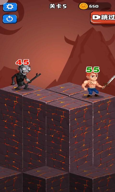 2、进入下一关,魔物的数量增多,按住角色向下,和魔物展开对战,查看角色的级别迎战不同的魔物。