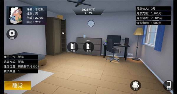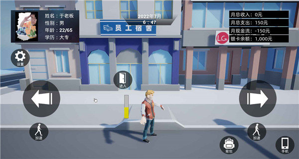 2、玩家需要不断工作,获取资金,从而发家致富。