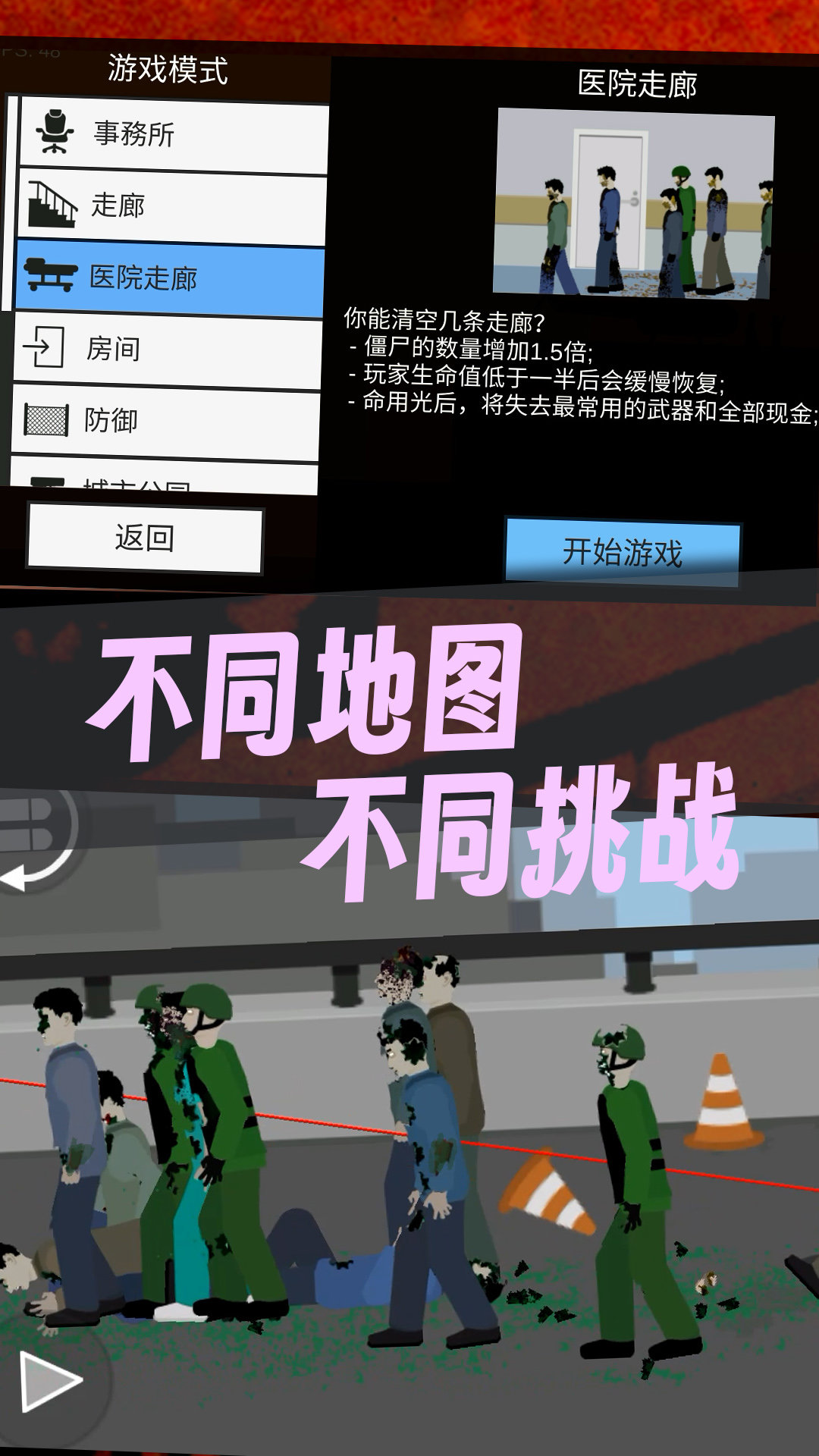 1、道闸门,众多秘密和大量枪支将使您与许多不寻常的像素僵尸战斗。